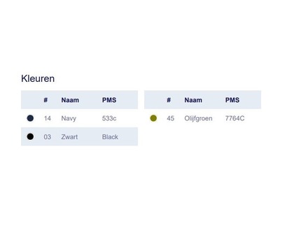 Prijzen per stuk, inclusief borduring en instelkosten!